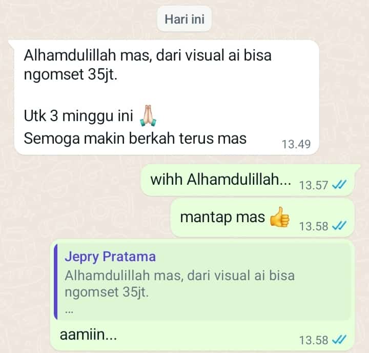 Sistem pembelajarannya adalah Anda belajar secara mandiri. Nantinya panduan beserta materi utama kami sediakan di member area & GRUP TELEGRAM berupa akses prompt & Video panduan, bisa Anda pelajari kapanpun Anda mau dan punya waktu
